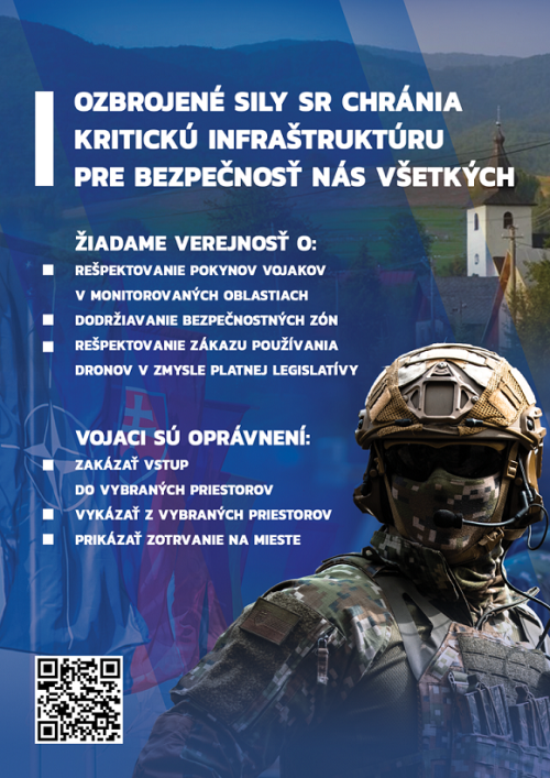Vážení občania, Ozbrojené sily Slovenskej republiky spúšťajú preventívne opatrenia na ochranu kritickej infraštruktúry.