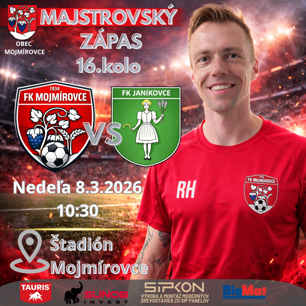 Súperom nášho mužstva bude FK Janíkovce. Príďte podporiť našich hráčov a vytvoriť skvelú domácu atmosféru na úvod jarnej časti sútaže.